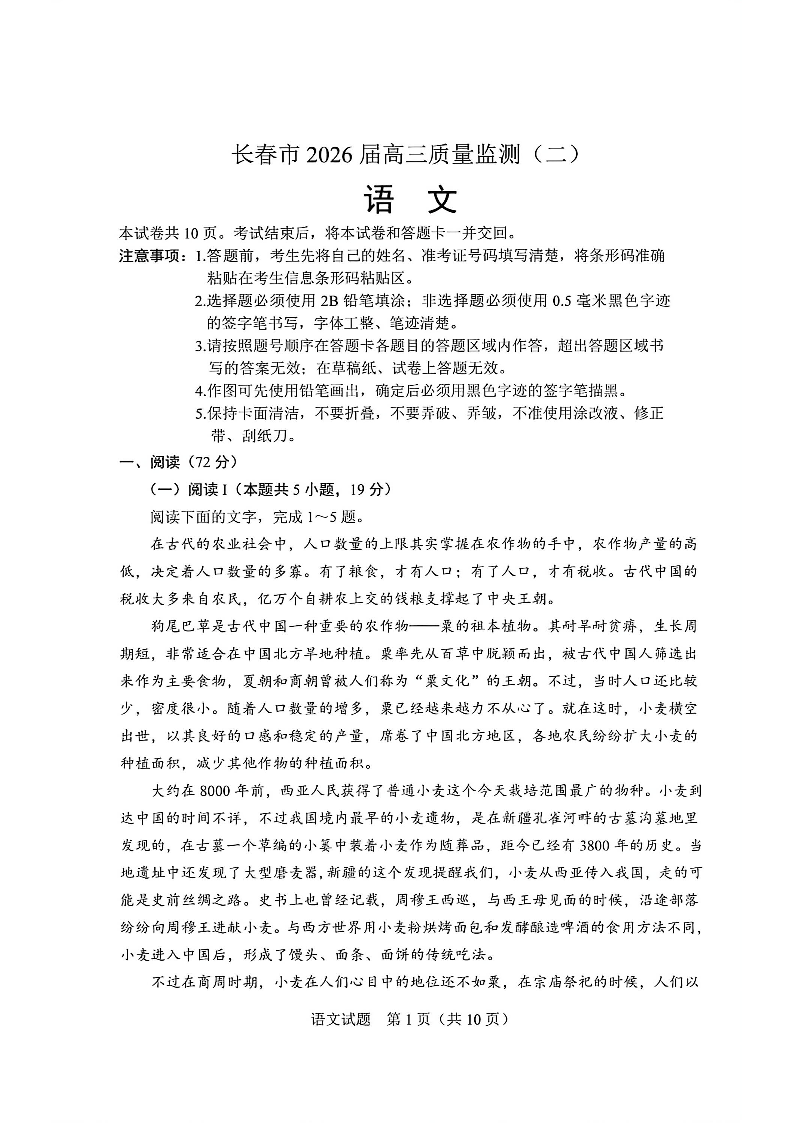 吉林省长春市2026届高三年级质量监测(二)语文.pdf