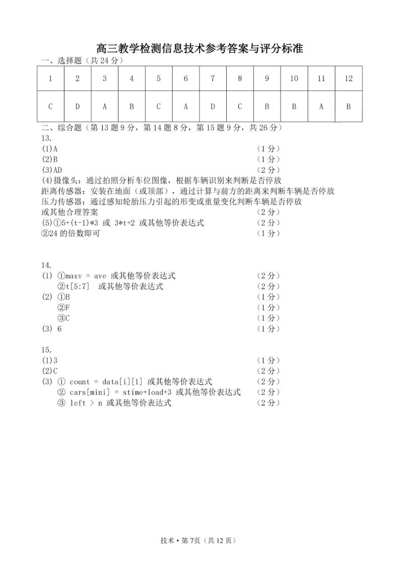 2025学年第二学期杭州市高三年级教学质量检测 技术答案.pdf