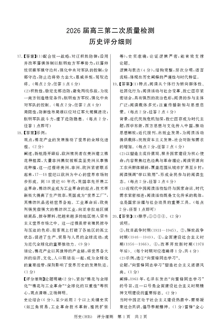 T8联考2026届高三年级第二次质量检测 历史评分细则.pdf