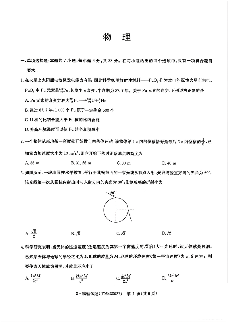 华大新高考联盟2026届高三3月教学质量测评 物理试题(含答案).pdf