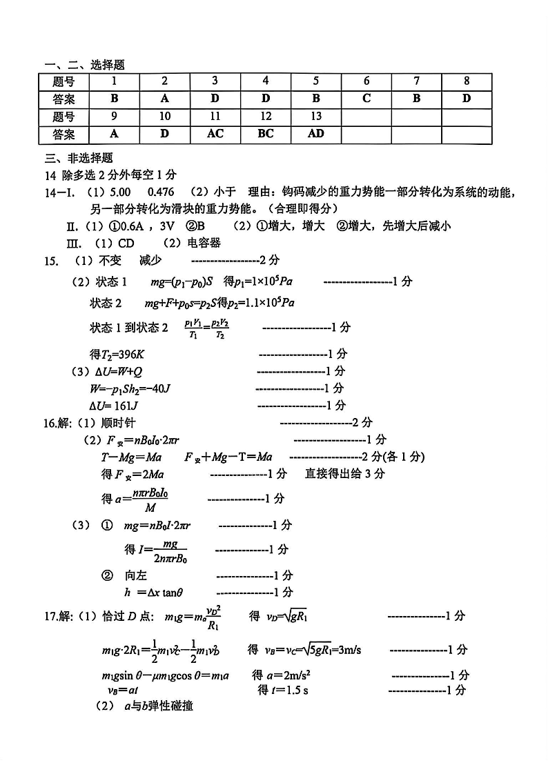 台州市2026届高三第二次教学质量评估试题 物理答案.pdf