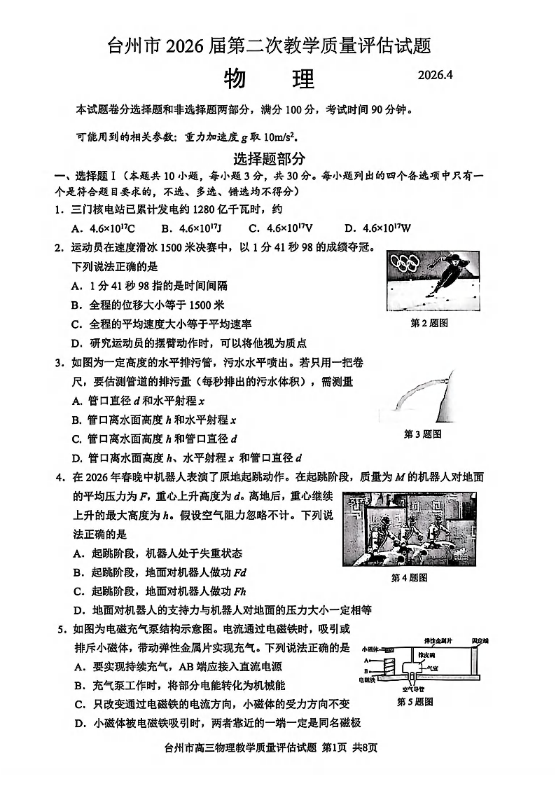 台州市2026届高三第二次教学质量评估试题 物理.pdf