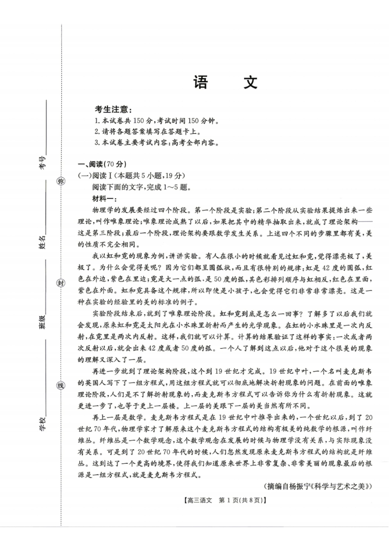 汉中市2026届普通高中高三年级第二次教学质量检测考试 语文试题(含答案).pdf