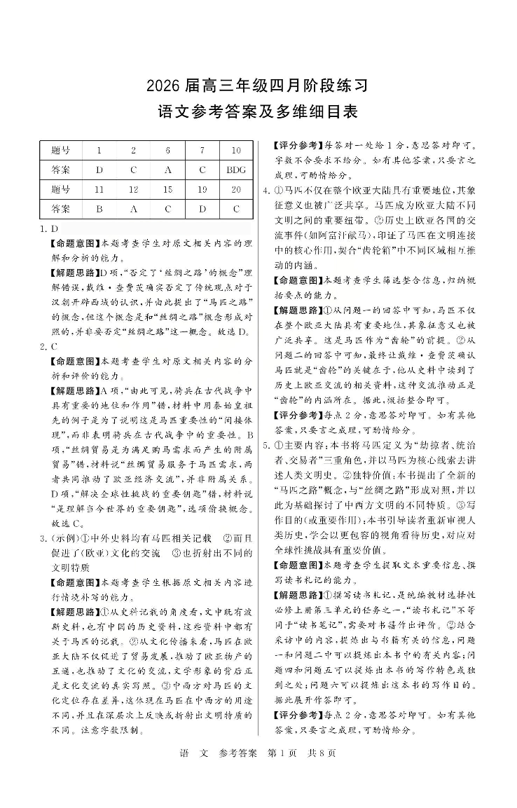 T8联考2026届高三年级四月阶段练习 语文答案.pdf