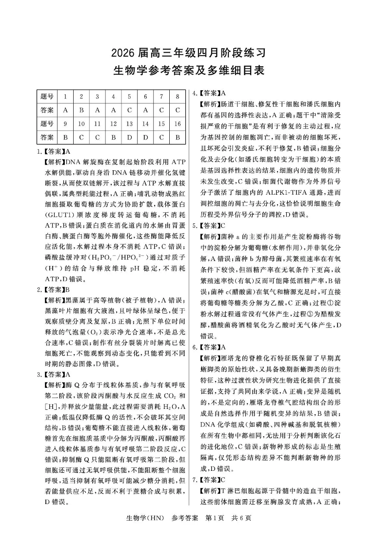 T8联考2026届高三年级四月阶段练习 生物答案.pdf