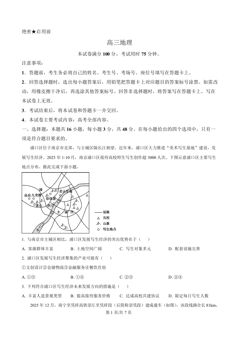 辽宁省抚顺市六校协作体2026届高三下学期一模考试 地理.docx