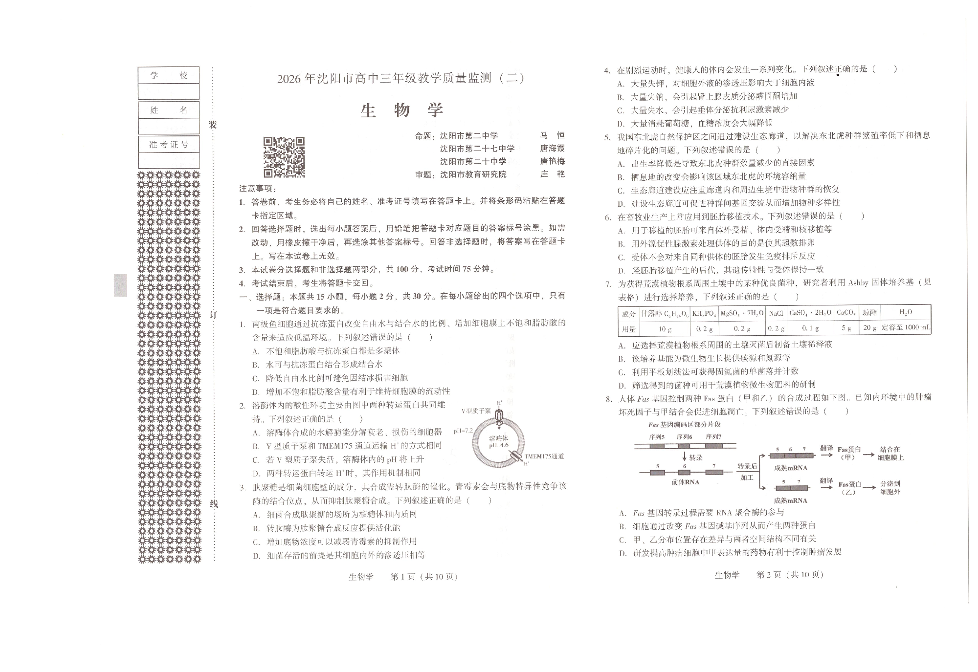 2026年沈阳市高中三年级教学质量监测(二)生物.pdf