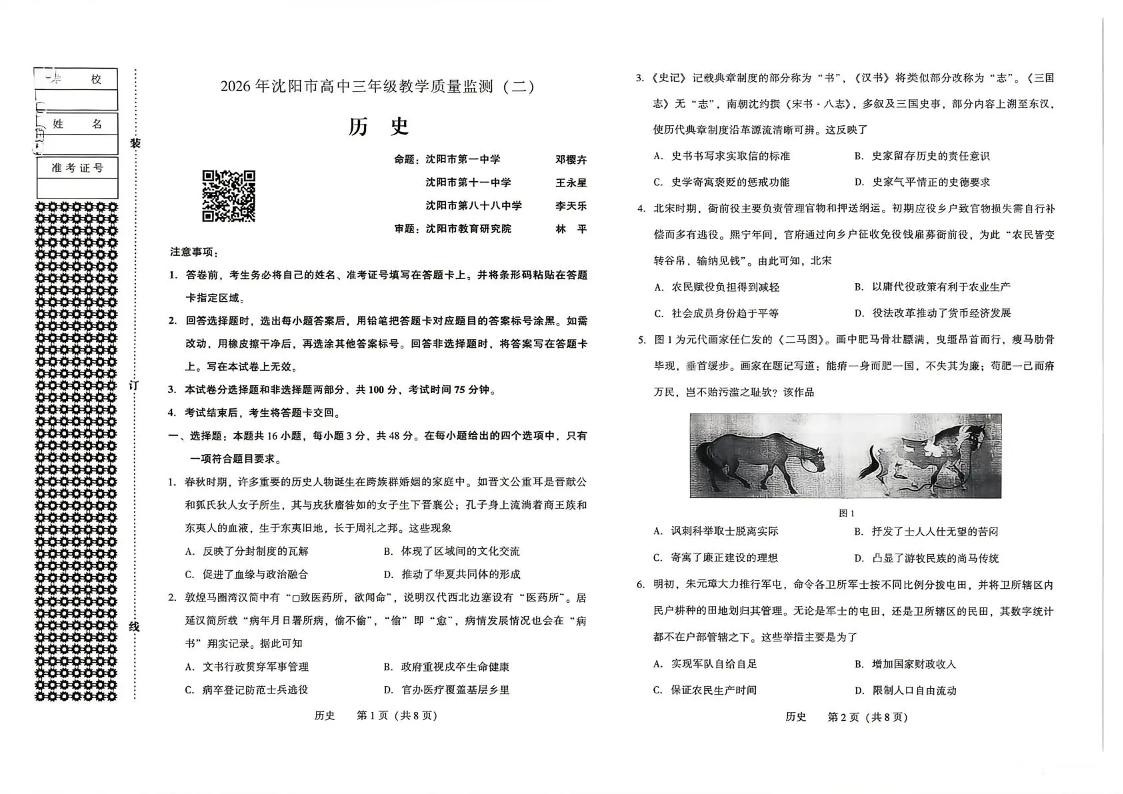 2026年沈阳市高中三年级教学质量监测(二)历史.pdf