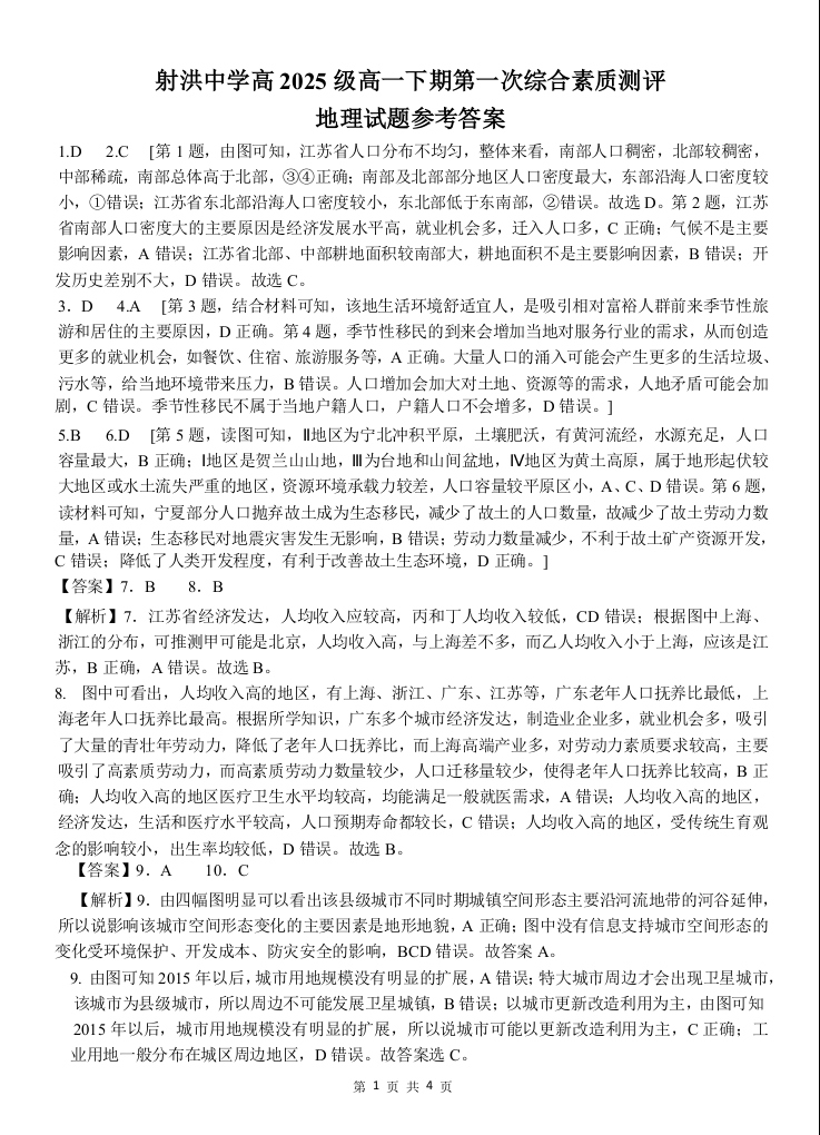 遂宁市射洪中学2025-2026学年高一下学期第一次综合素质测评 地理答案.docx