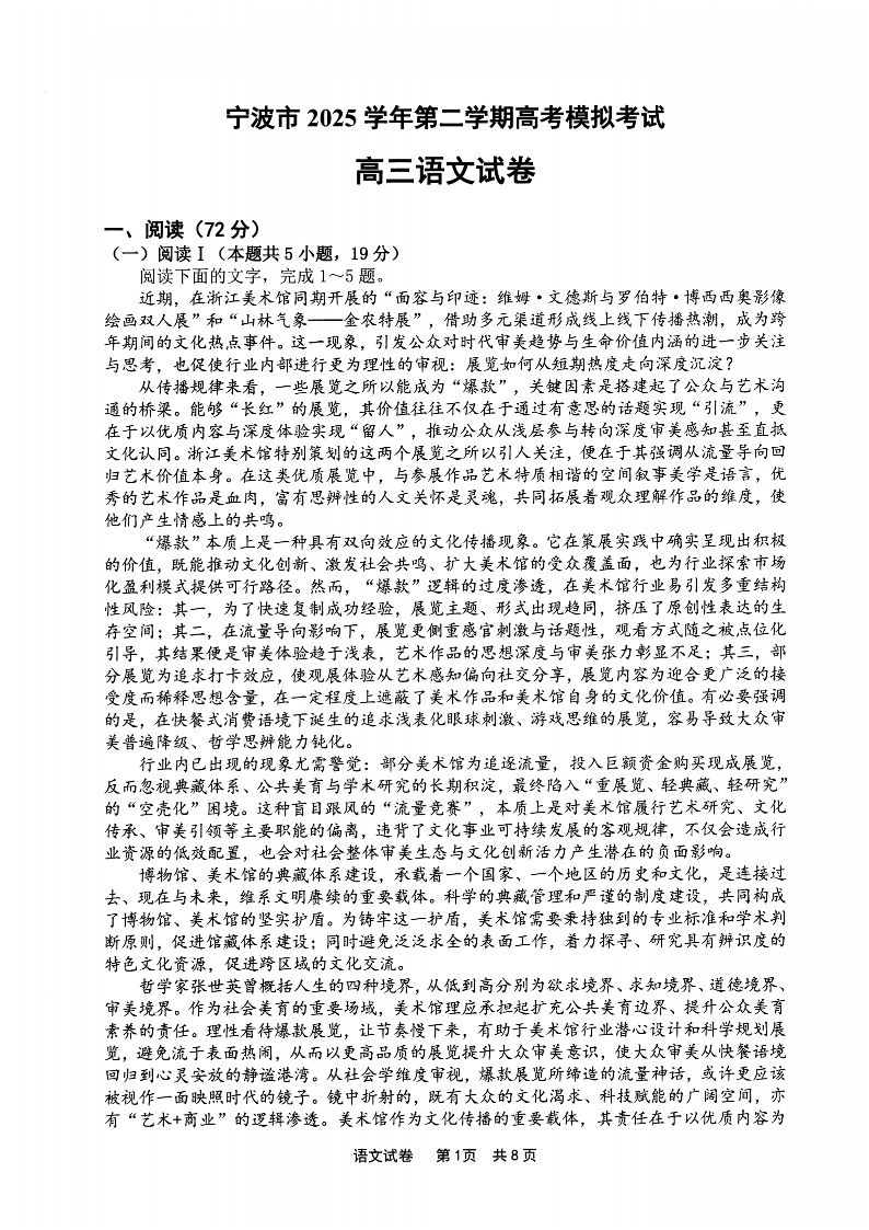 宁波市2025学年第二学期高考模拟考试 语文.pdf