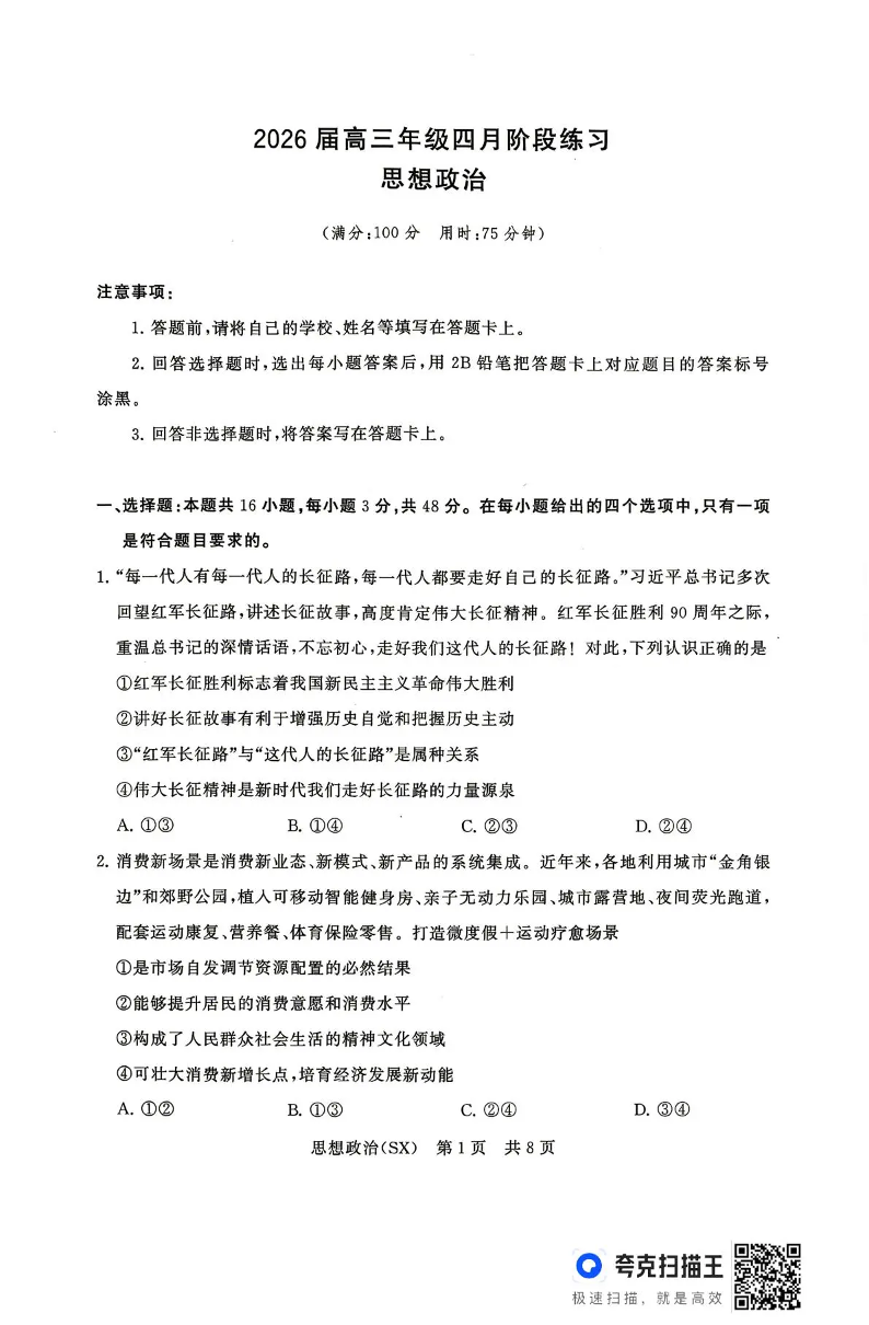 2026届高三年级四月阶段练习 政治(SX).pdf