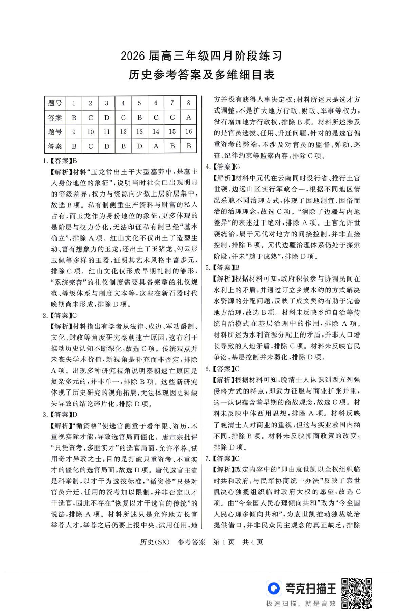 2026届高三年级四月阶段练习 历史(SX)答案.pdf
