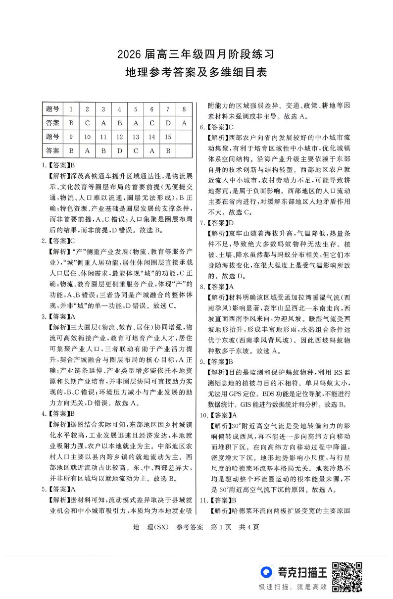2026届高三年级四月阶段练习 地理(SX)答案.pdf