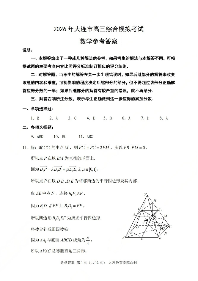 2026年大连市高三综合模拟考试 数学答案.pdf