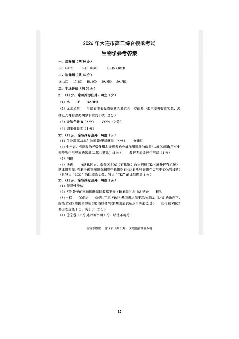 2026年大连市高三综合模拟考试 生物答案.pdf