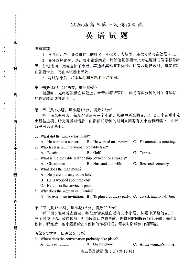 河北省保定市2026届高三年级第一次模拟考试 英语.pdf