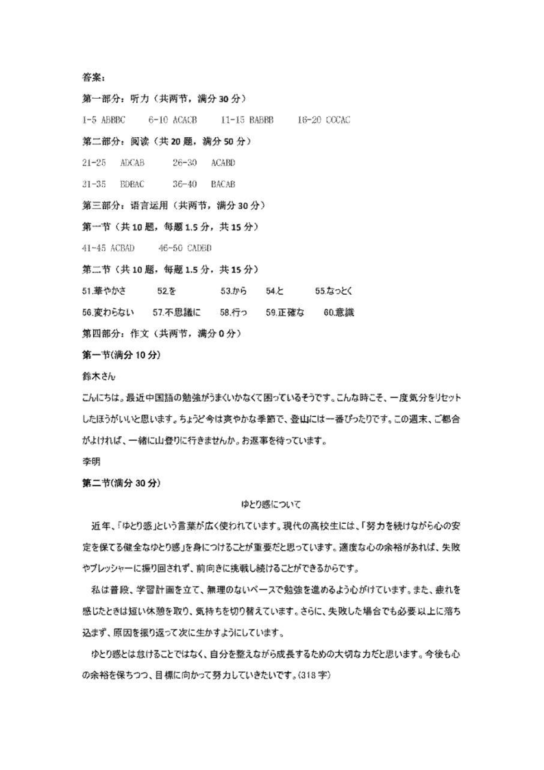 河北省保定市2026届高三年级第一次模拟考试 日语答案.pdf