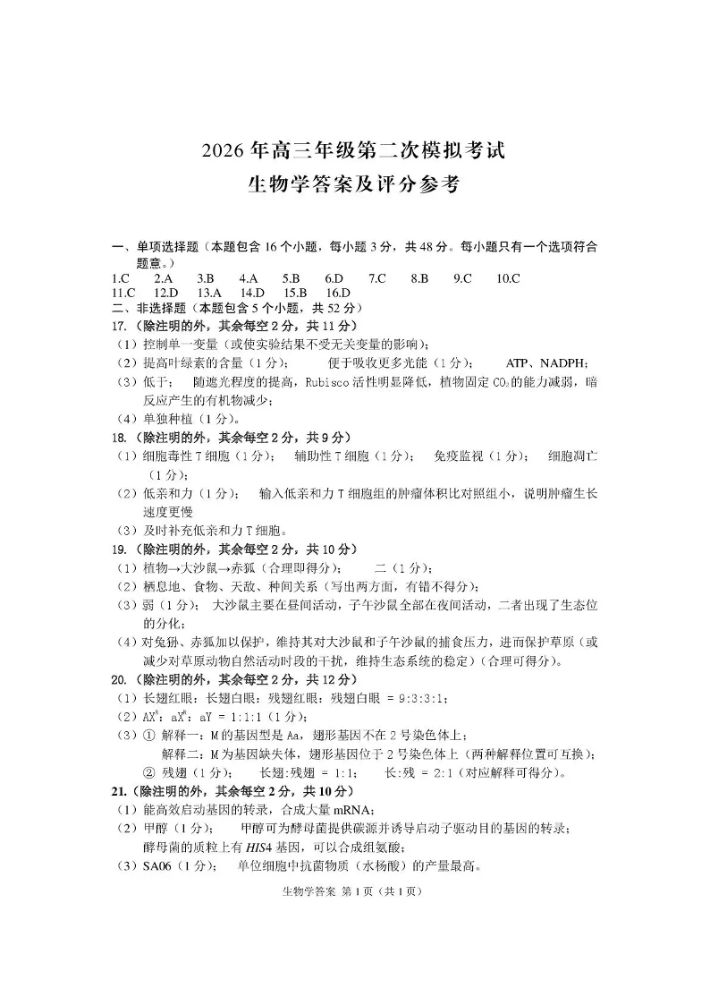 2026年高三年级第二次模拟考试试题 生物答案.pdf