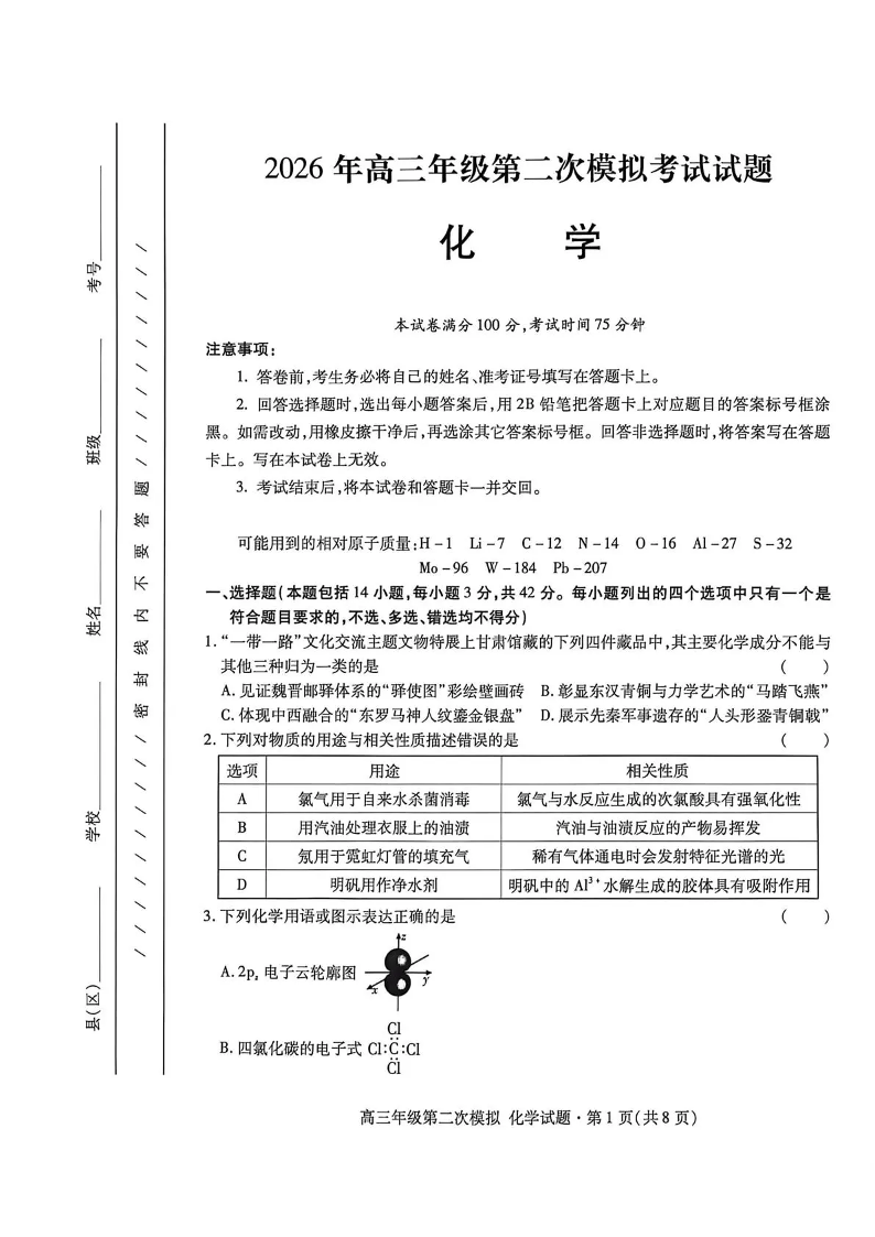 2026年高三年级第二次模拟考试试题 化学.pdf