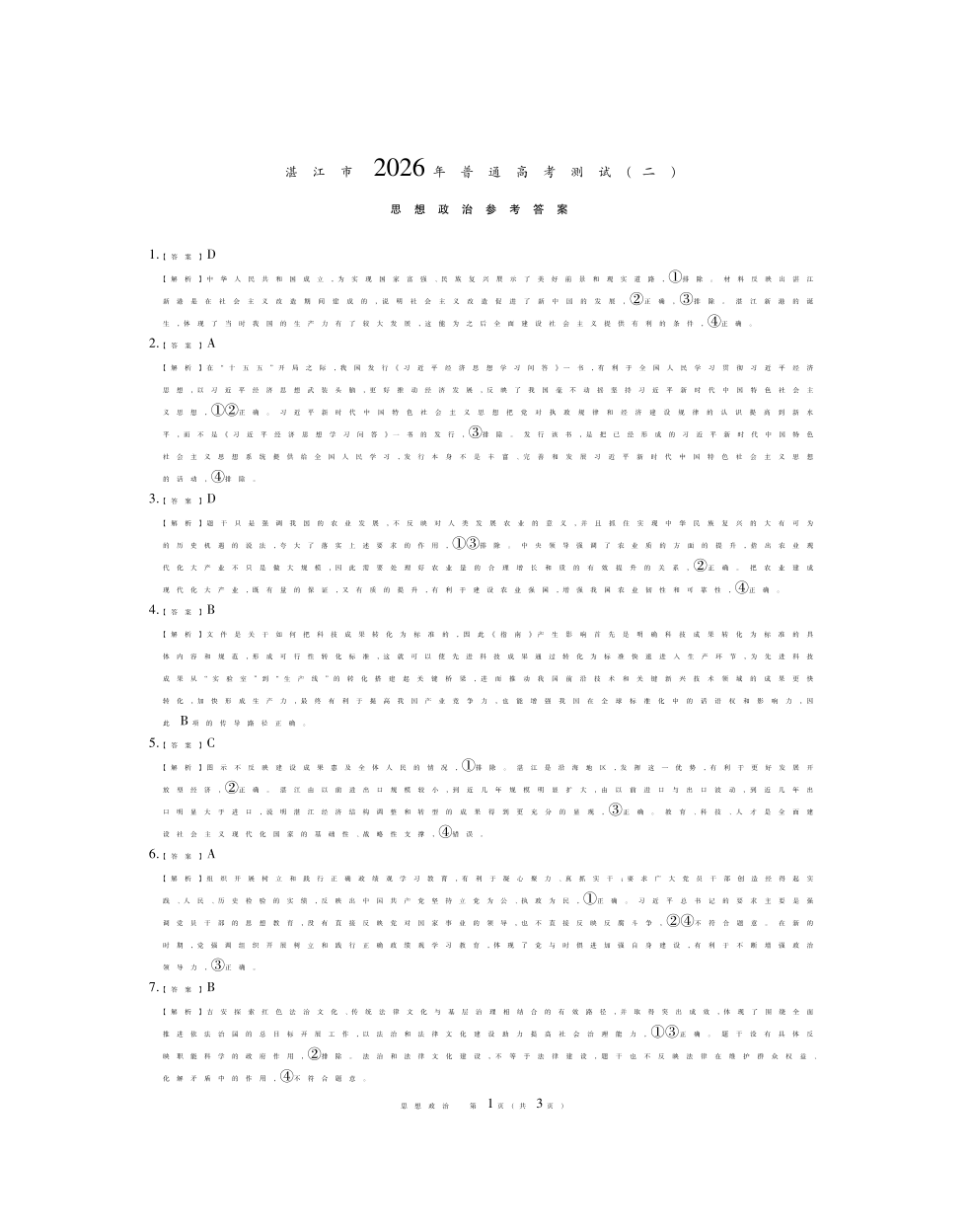 湛江市2026年普通高考测试(二)政治答案.pdf