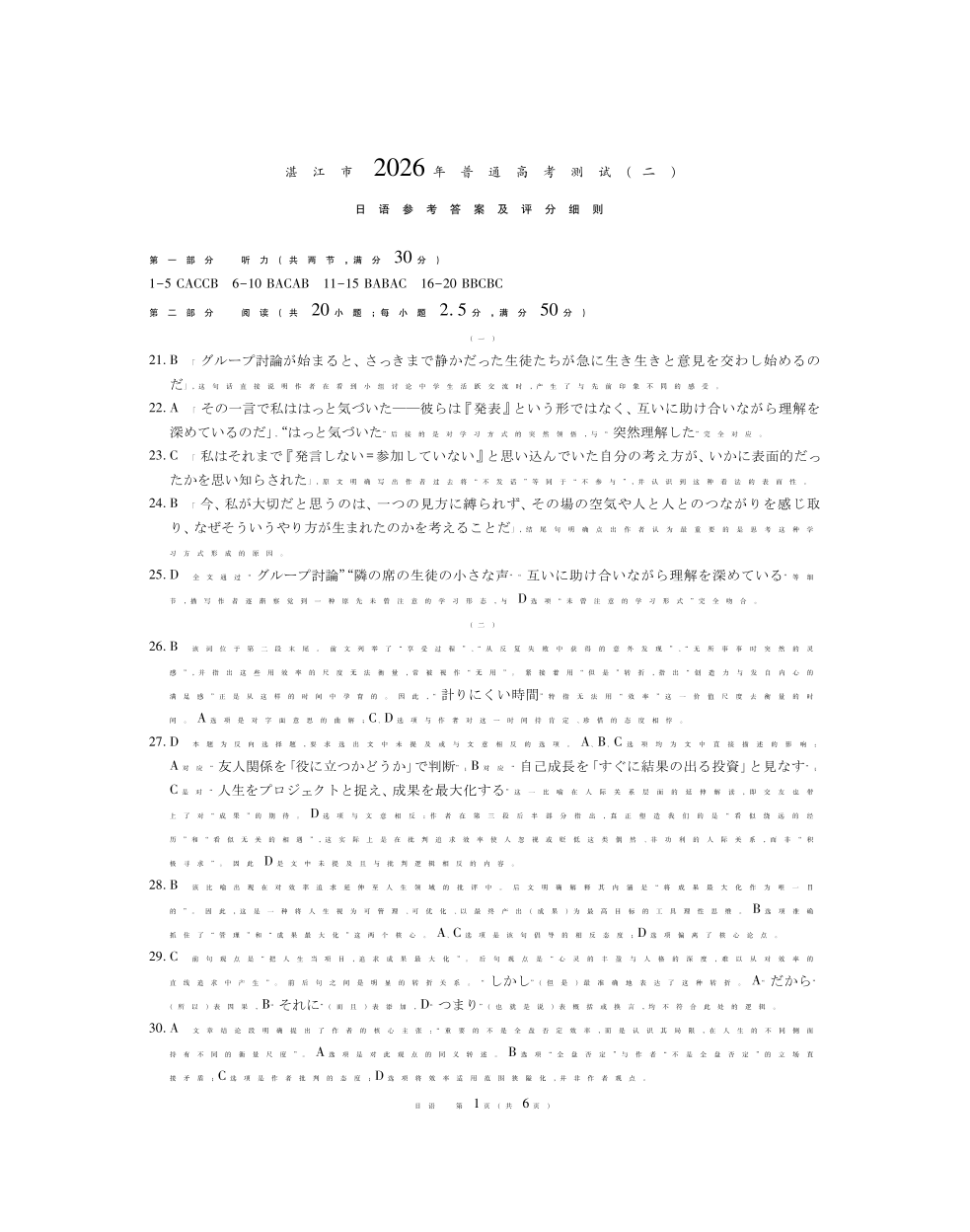 湛江市2026年普通高考测试(二)日语答案.pdf
