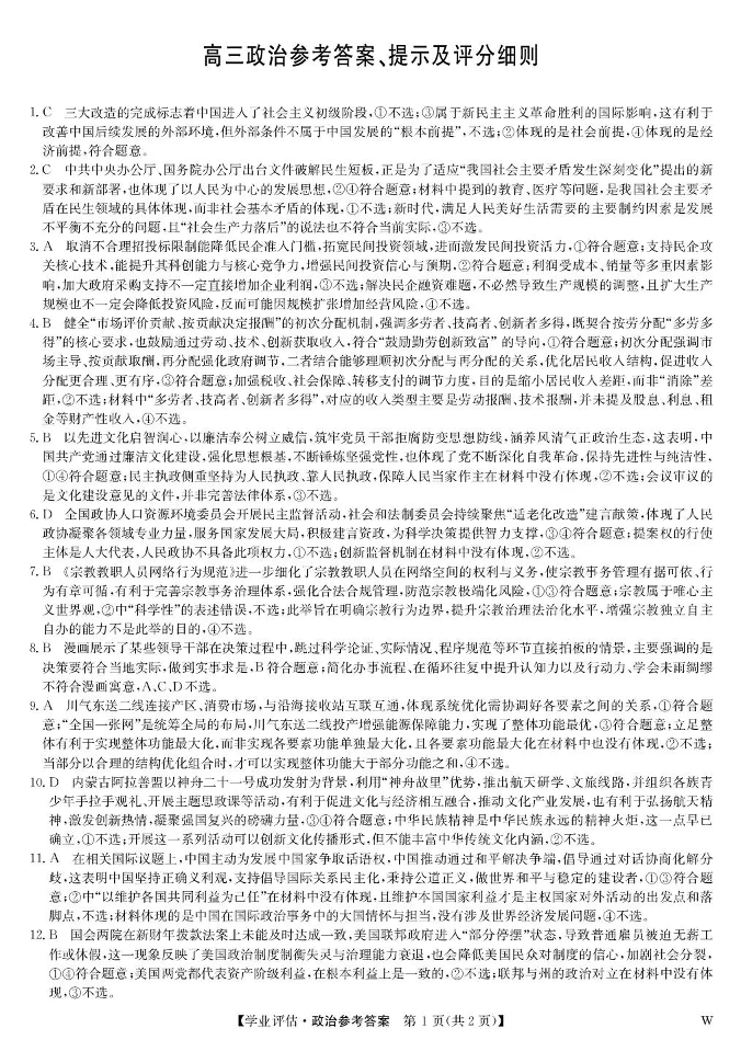 九师联盟2026届高三下学期4月学业评估 政治答案.pdf