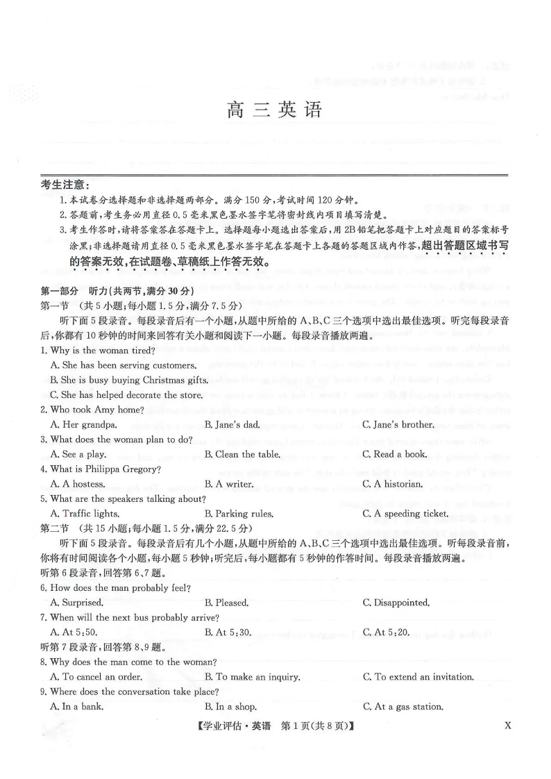 九师联盟2026届高三下学期4月学业评估 英语.pdf