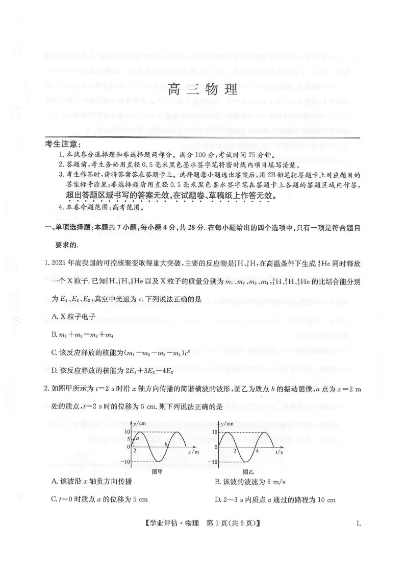 九师联盟2026届高三下学期4月学业评估 物理.pdf