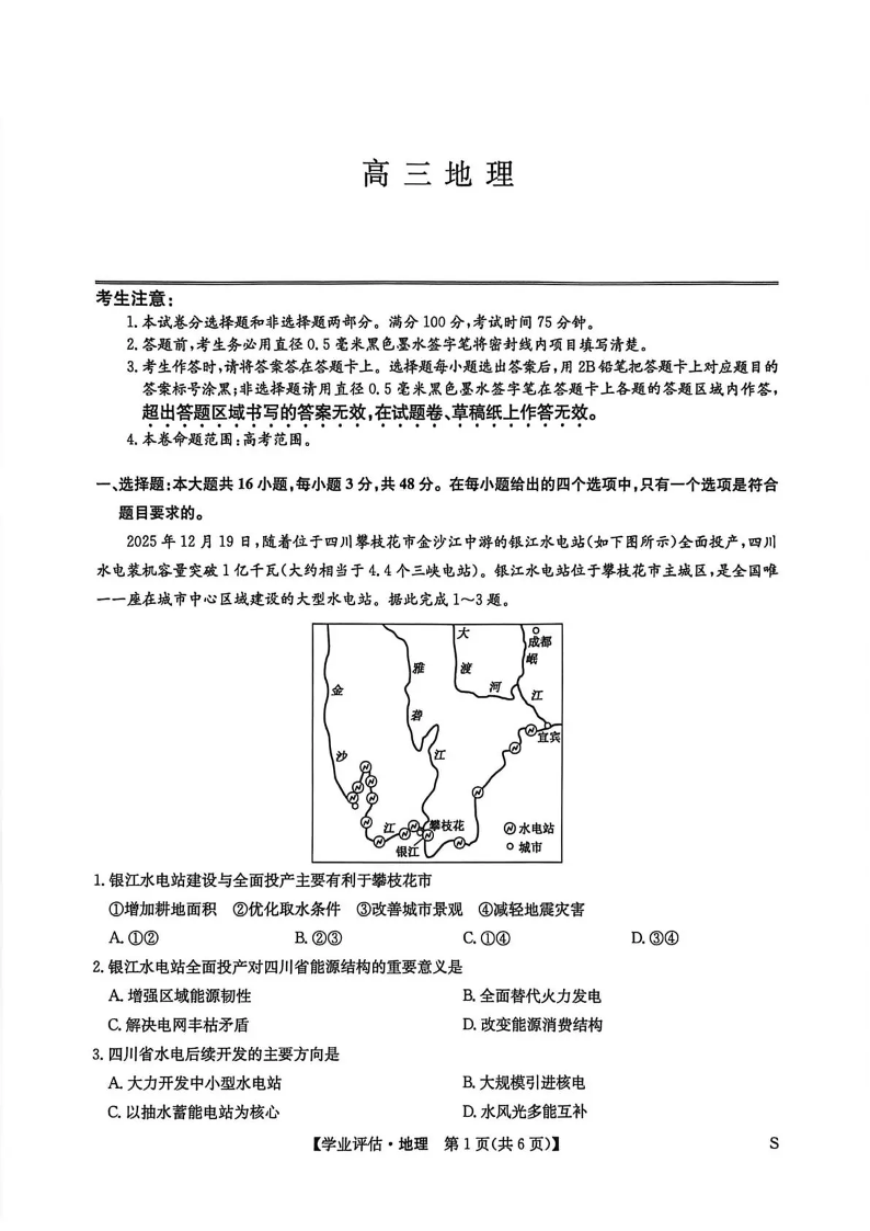 九师联盟2026届高三下学期4月学业评估 地理.pdf