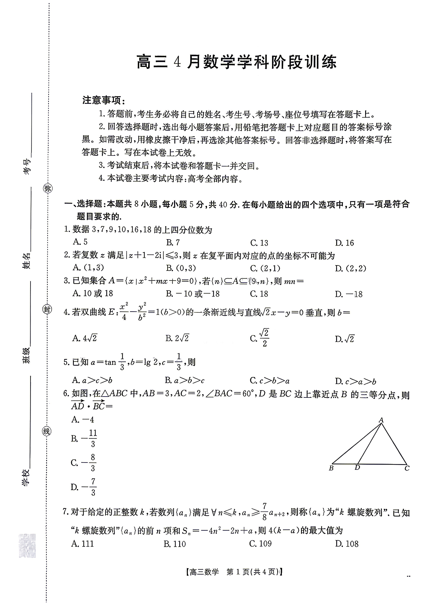 江西“三新”协同教研共同体2026届高三4月学科阶段训练 数学.pdf