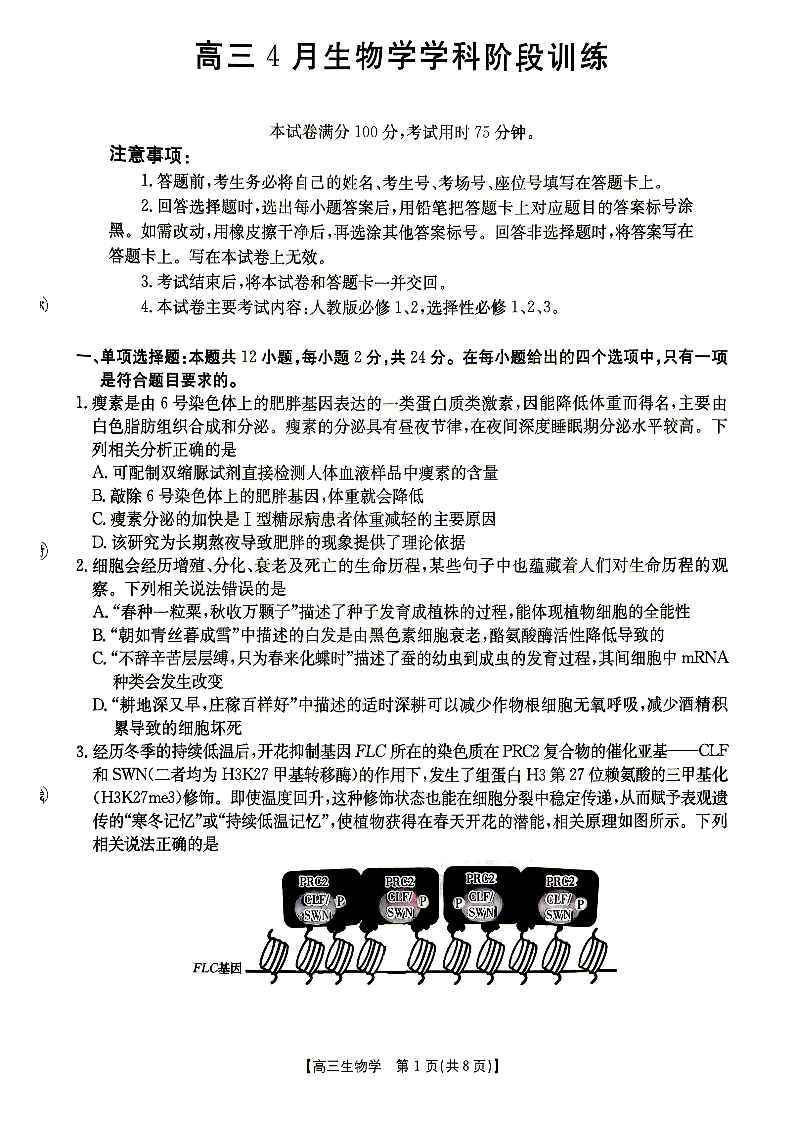 江西“三新”协同教研共同体2026届高三4月学科阶段训练 生物.pdf