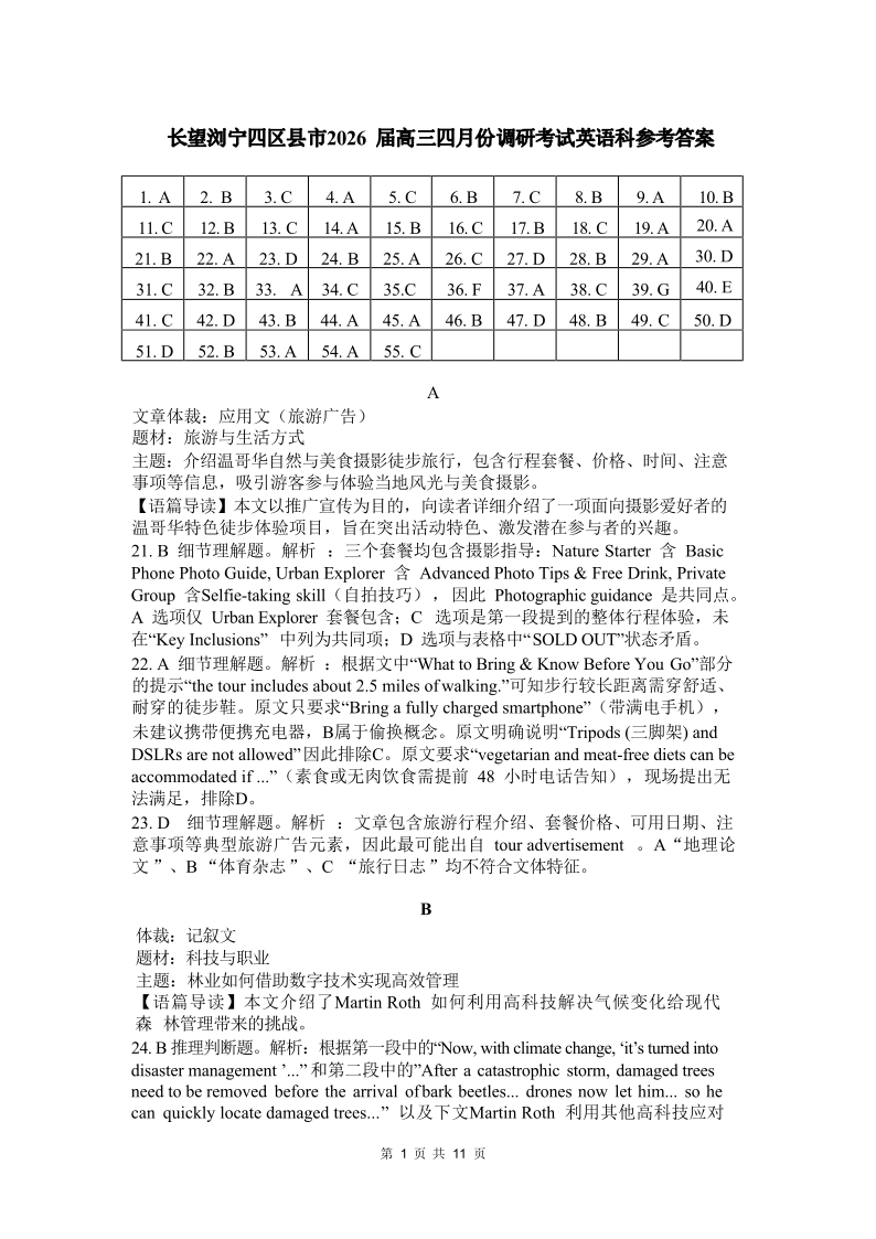 长望浏宁四区县市2026届高三四月份调研考试 英语答案.pdf