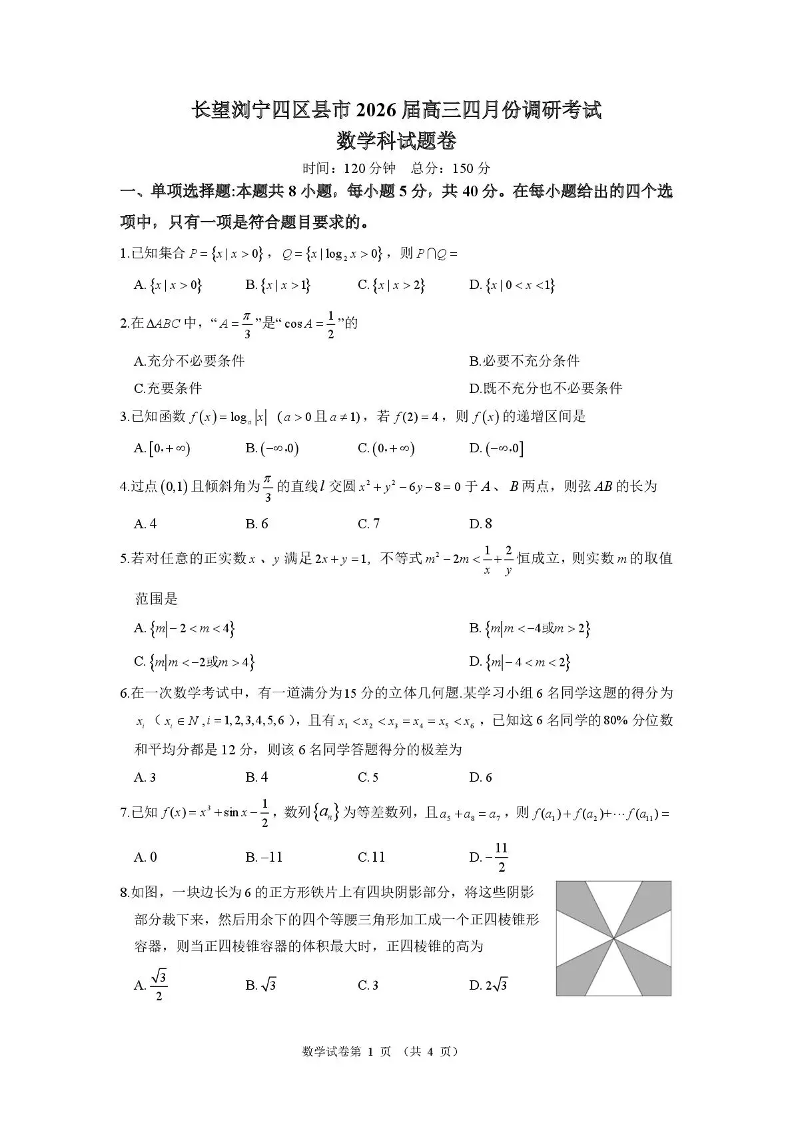 长望浏宁四区县市2026届高三四月份调研考试 数学.pdf