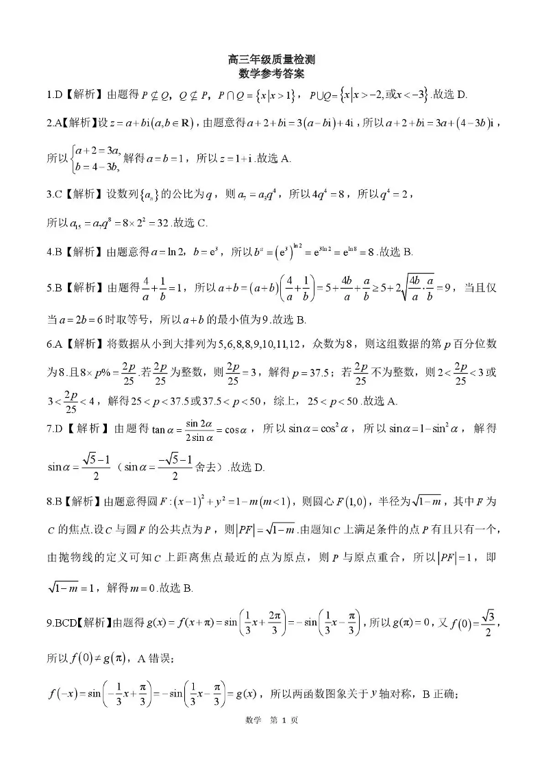 邢台市卓越联盟2026届高三下4月质量检测 数学答案.pdf