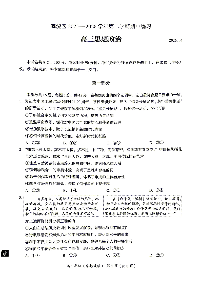 北京市海淀区2025-2026学年第二学期高三年级期中练习 政治试题(含答案).pdf