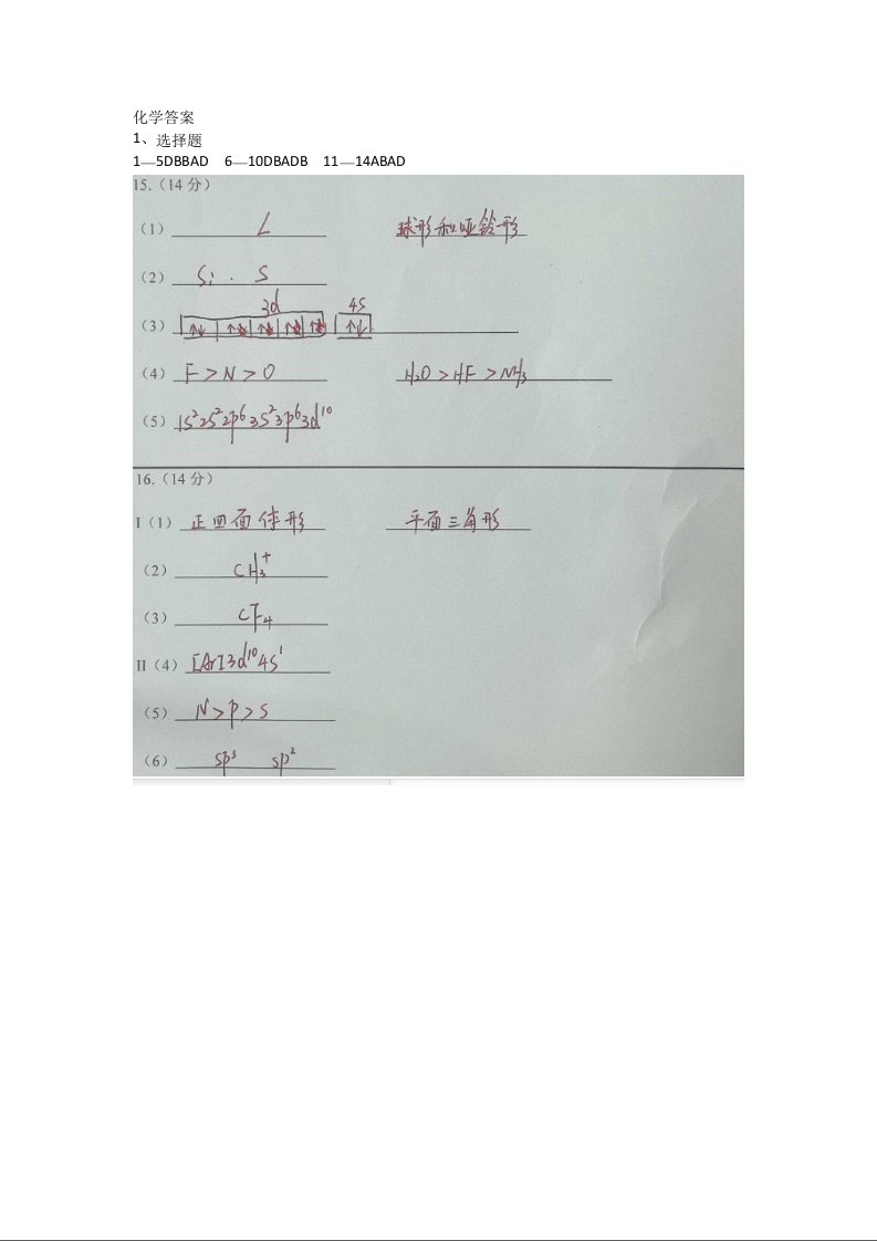 四川省遂宁市射洪中学2025-2026学年高二下学期第一次月考 化学答案.doc