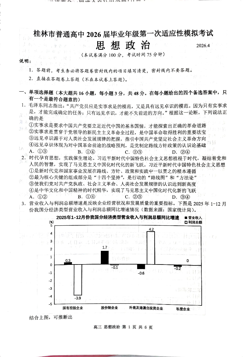 桂林市普通高中2026届毕业年级第一次适应性模拟考试 政治.pdf