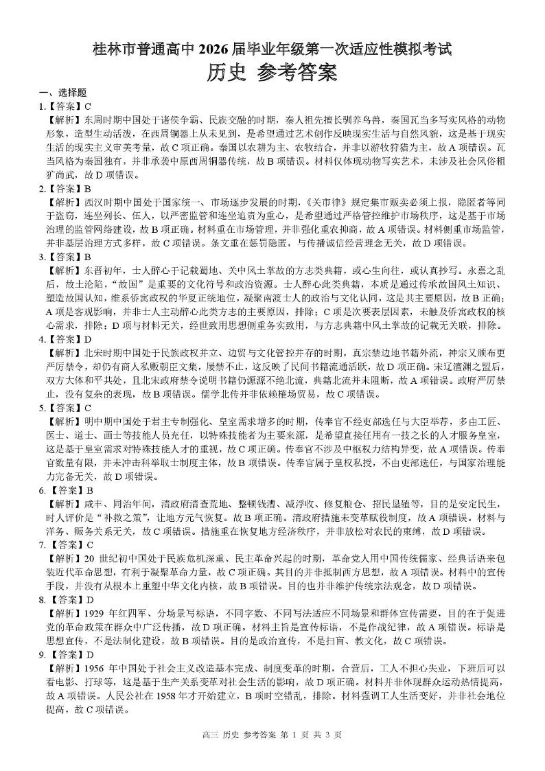 桂林市普通高中2026届毕业年级第一次适应性模拟考试 历史答案.pdf