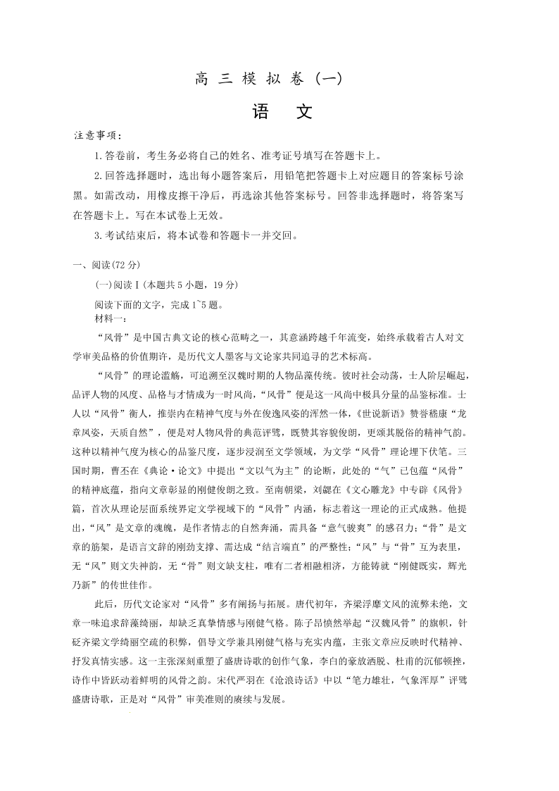 湖南师大附中2026届高三年级模拟卷(一)语文.pdf