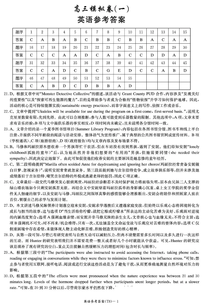 湖南师大附中2026届高三年级模拟卷(一)英语答案.pdf