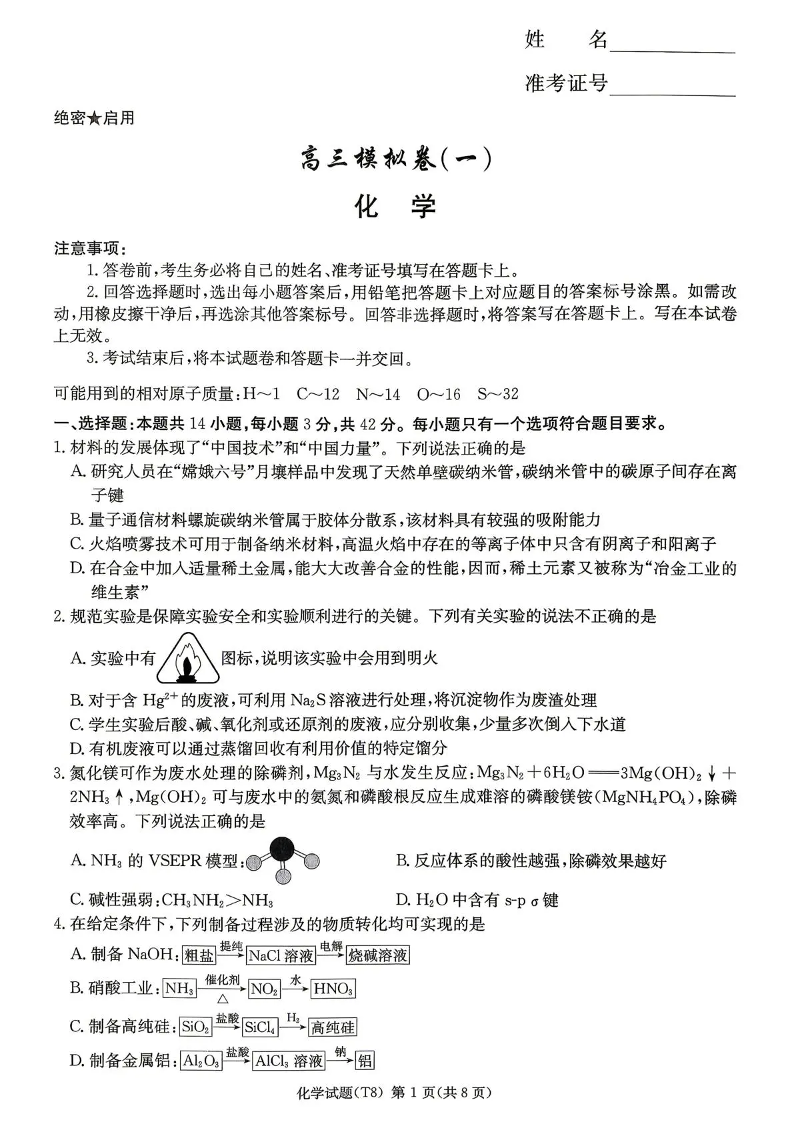 湖南师大附中2026届高三年级模拟卷(一)化学.pdf