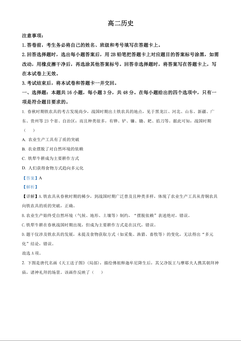 河北省定州中学2025-2026学年高二下学期阶段检测 历史答案.docx
