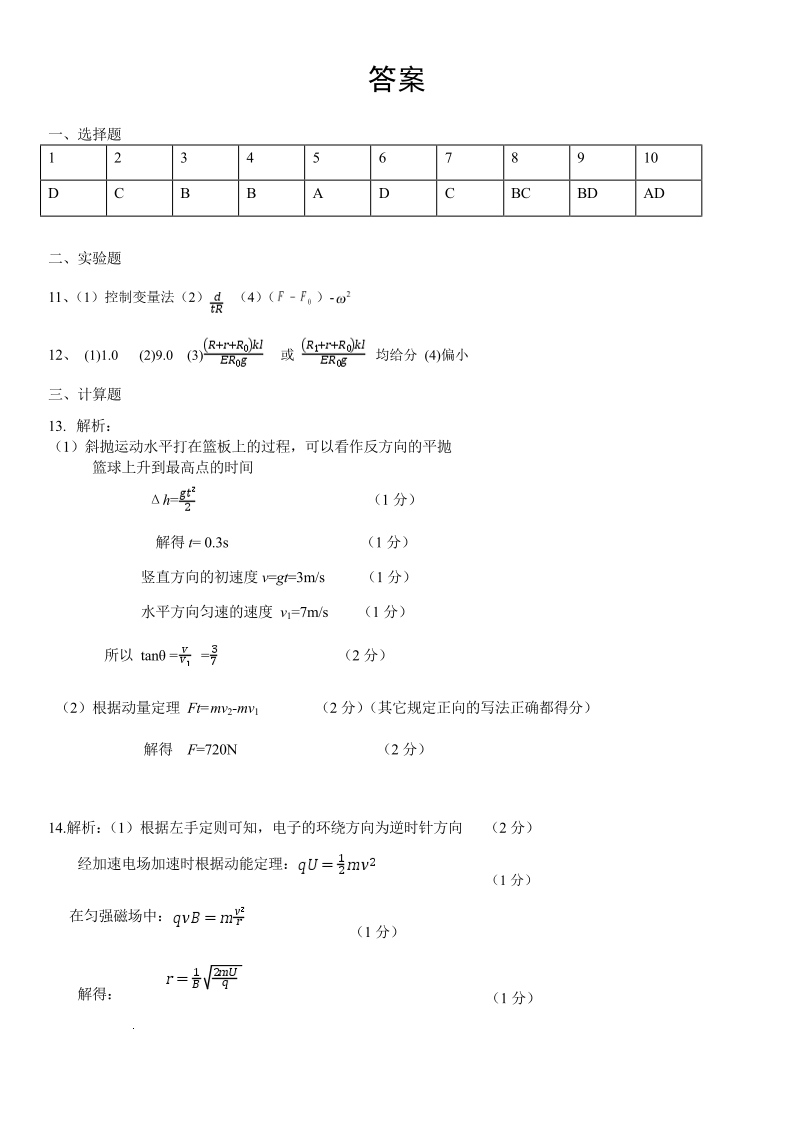 辽宁省丹东市2026届高三年级教学质量监测 物理答案.pdf