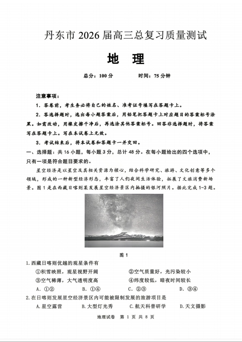 辽宁省丹东市2026届高三年级教学质量监测 地理.docx