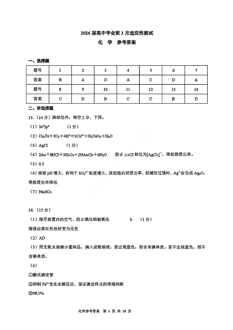 广西壮族自治区柳州市2026届高三年级高考适应性考试 化学答案.pdf