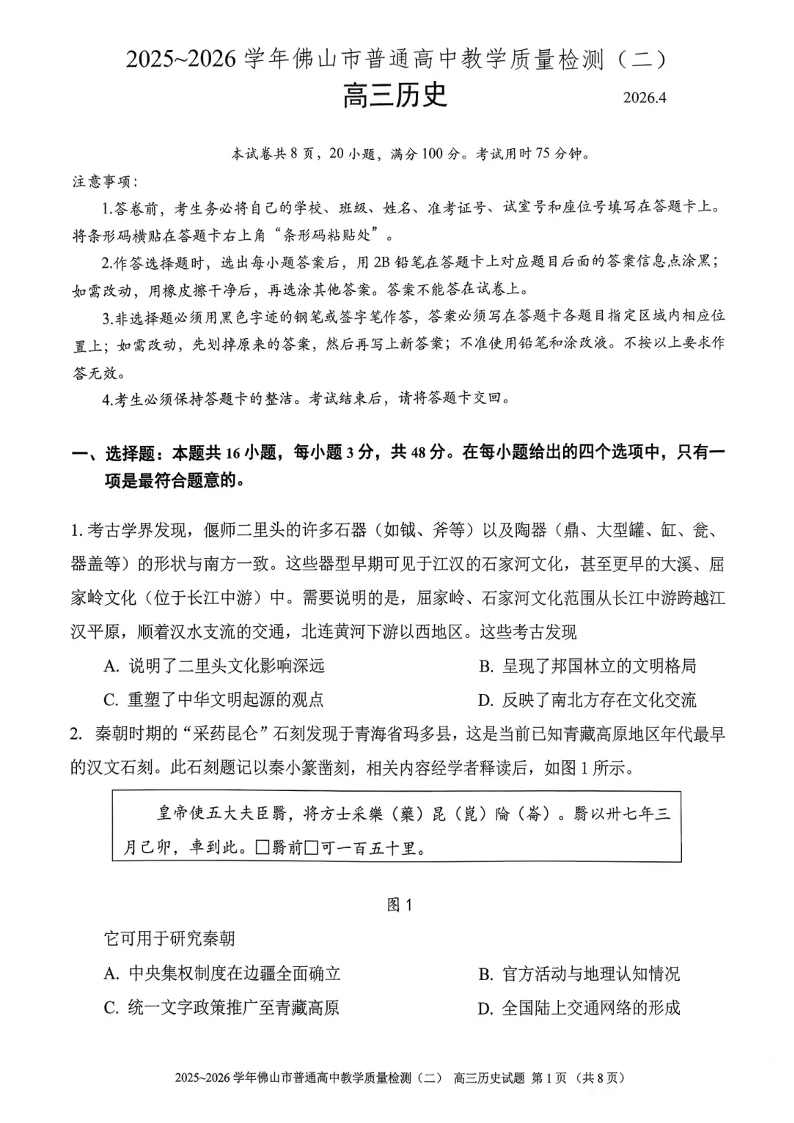 广东省2025-2026学年佛山市普通高中高三年级教学质量检测(二)历史.pdf