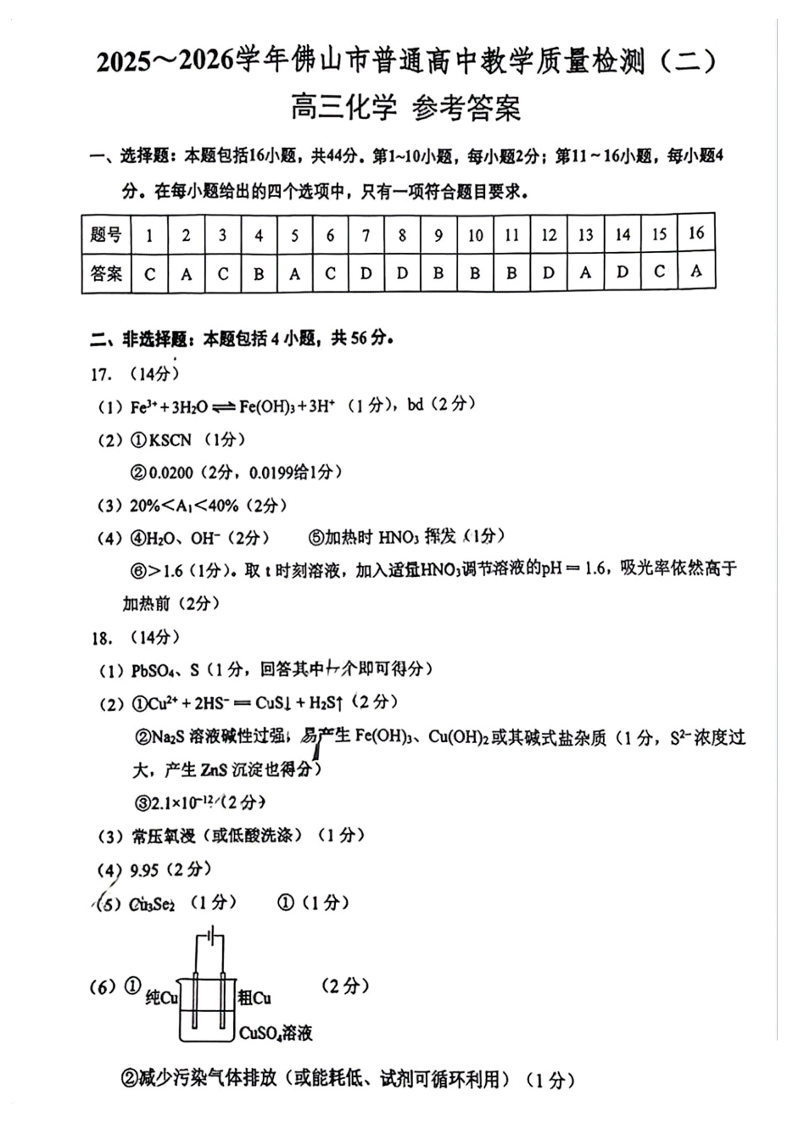广东省2025-2026学年佛山市普通高中高三年级教学质量检测(二)化学答案.pdf