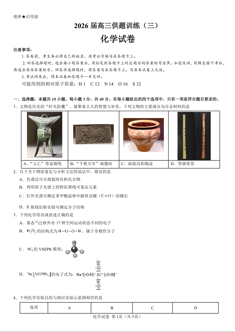 2026届高三供题训练(三)化学试题.docx