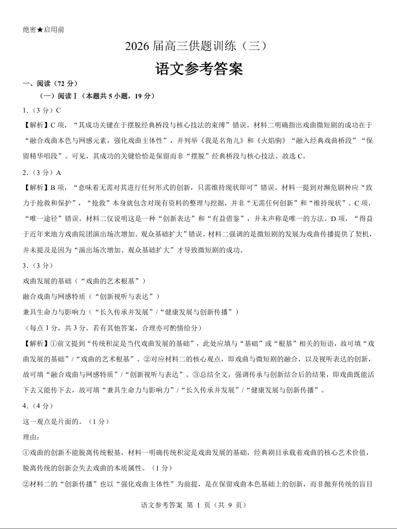 2026届高三供题训练(三)语文参考答案.doc