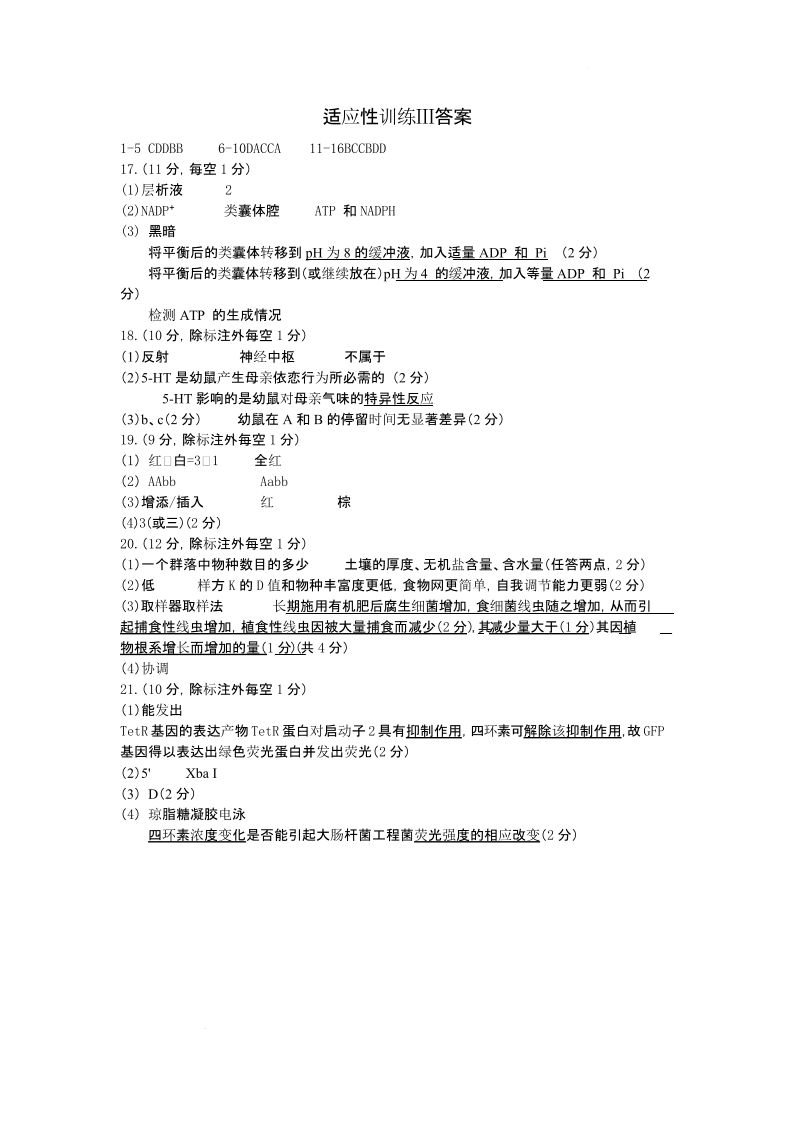 山西大学附属中学校2025-2026学年高三下学期4月阶段检测 生物答案.pdf